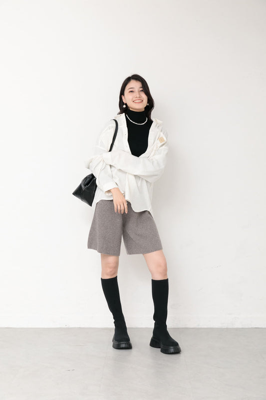 リブニットショートパンツ|ブラック