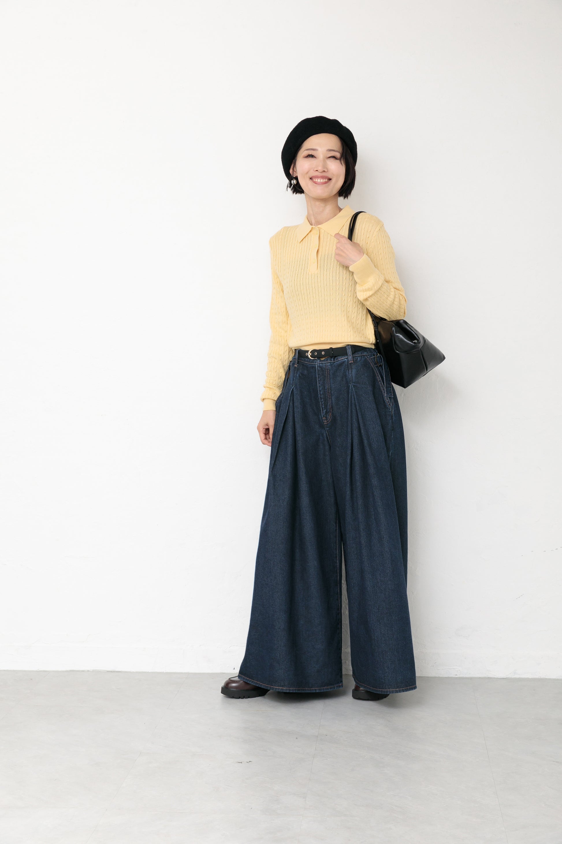 スーパーワイドなシルエットにも関わらず、すっきりとした腰回りを実現させ、裾にかけて緩やかにライン広がることで誰でもスタイリッシュに着こなせます。