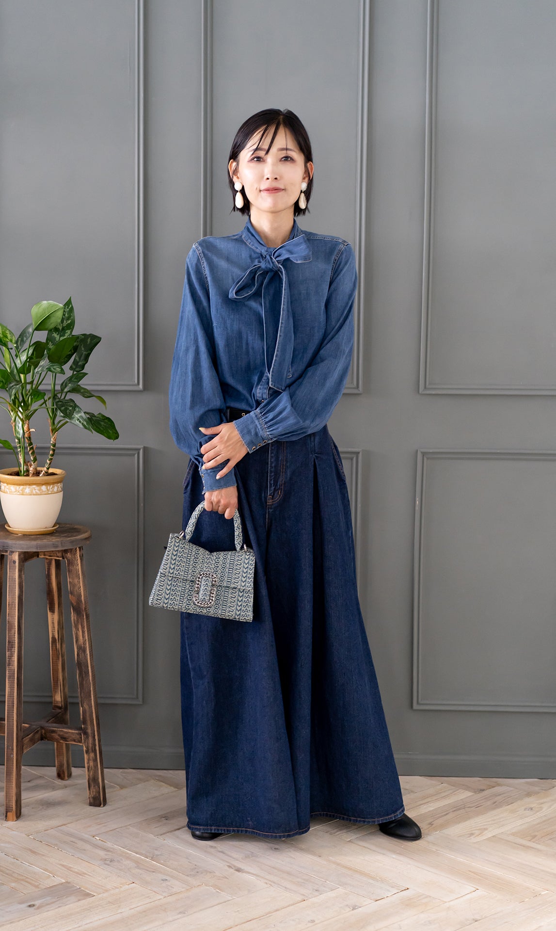 体型、性別、年齢を問わず誰が着用しても、その人らしさが際立つ美しいシルエットに設計。自分が成長すると共に、自分色に成長する「袴ジーンズ」は、男性が着用すると侍の様なかっこいい雰囲気に、女性が着用するとスカートにも見えるボリューム感で、coolにもcuteにもご着用いただけます。