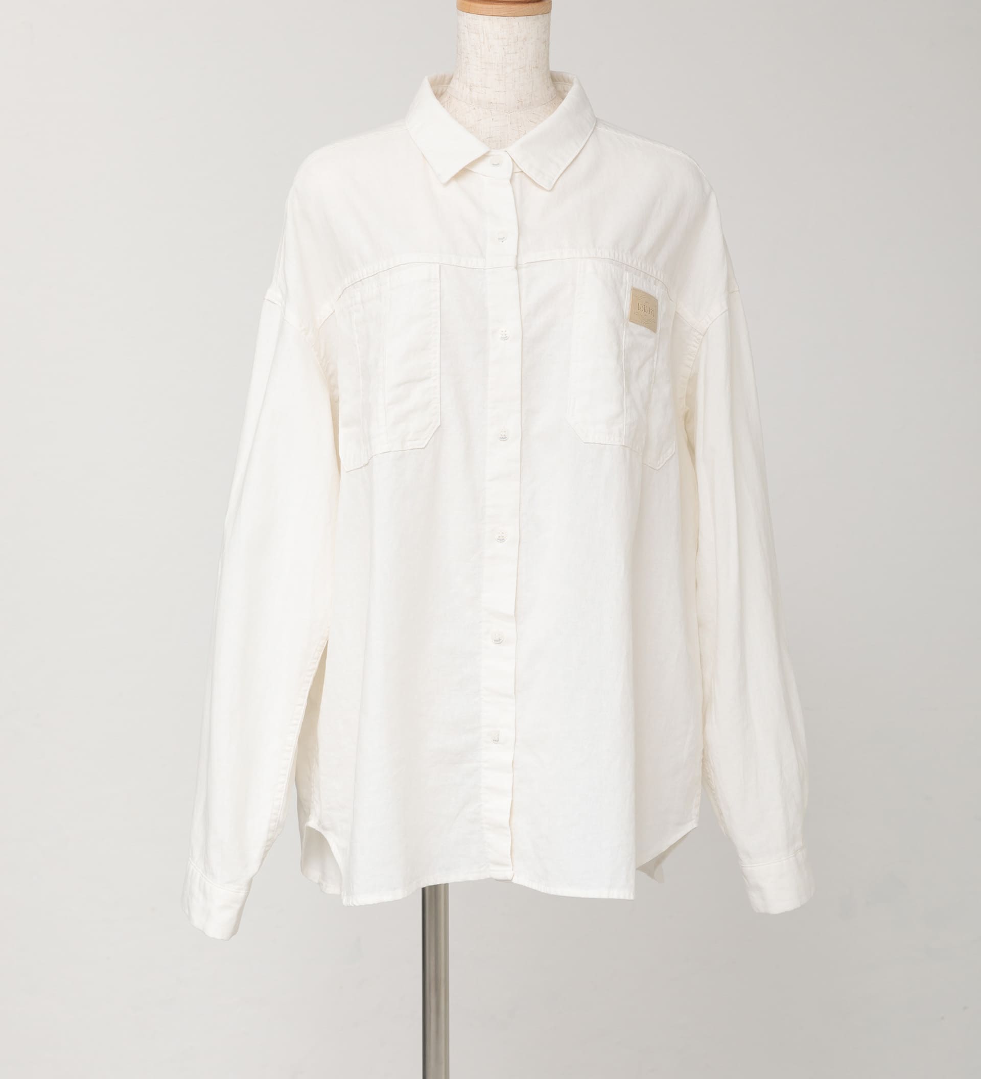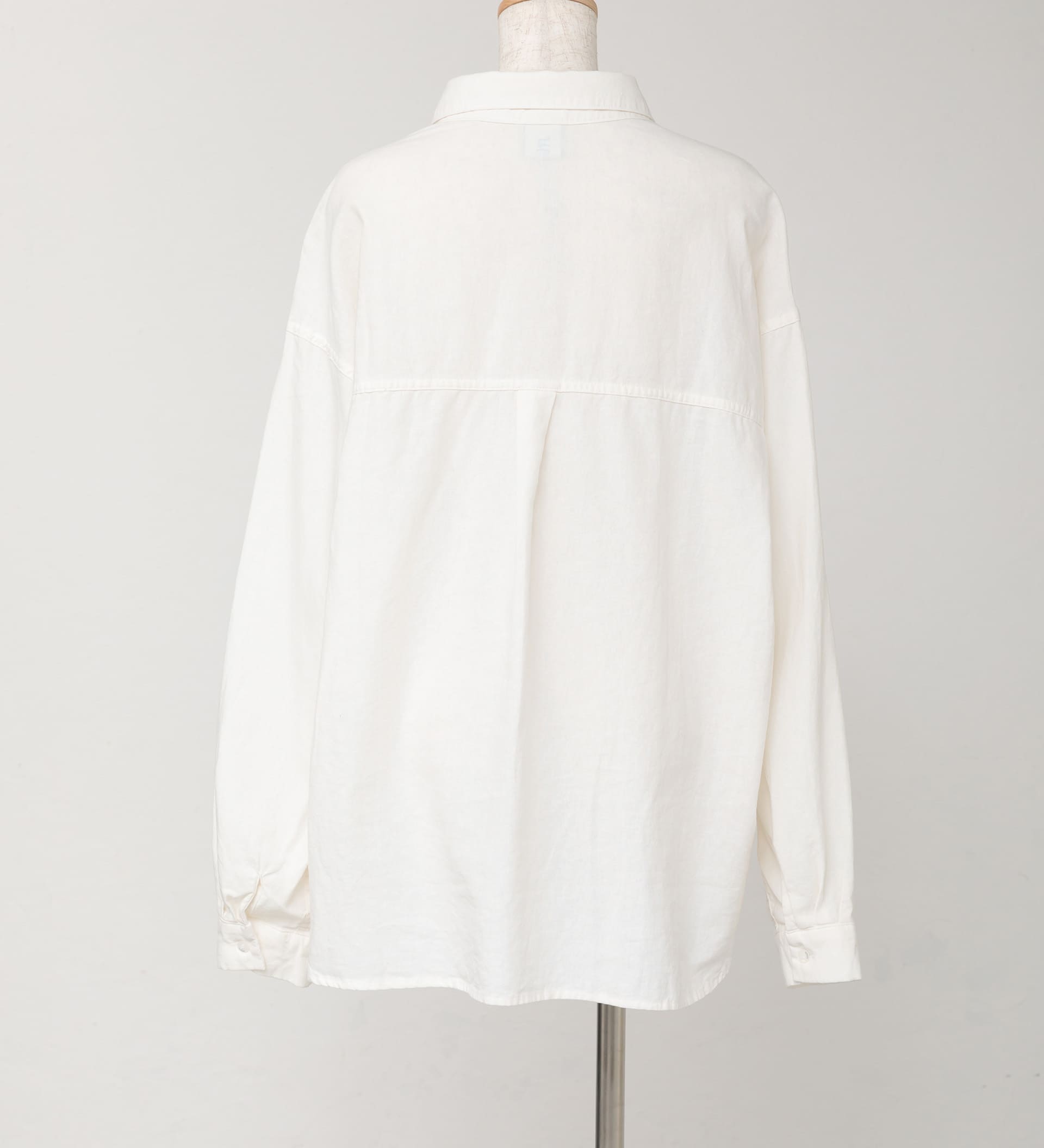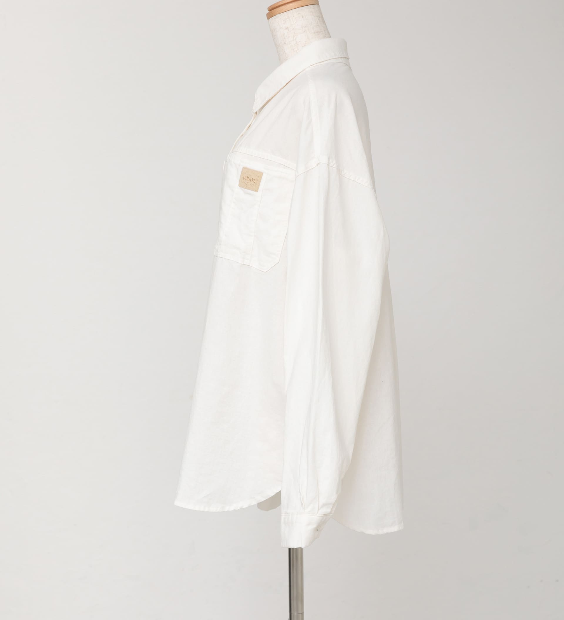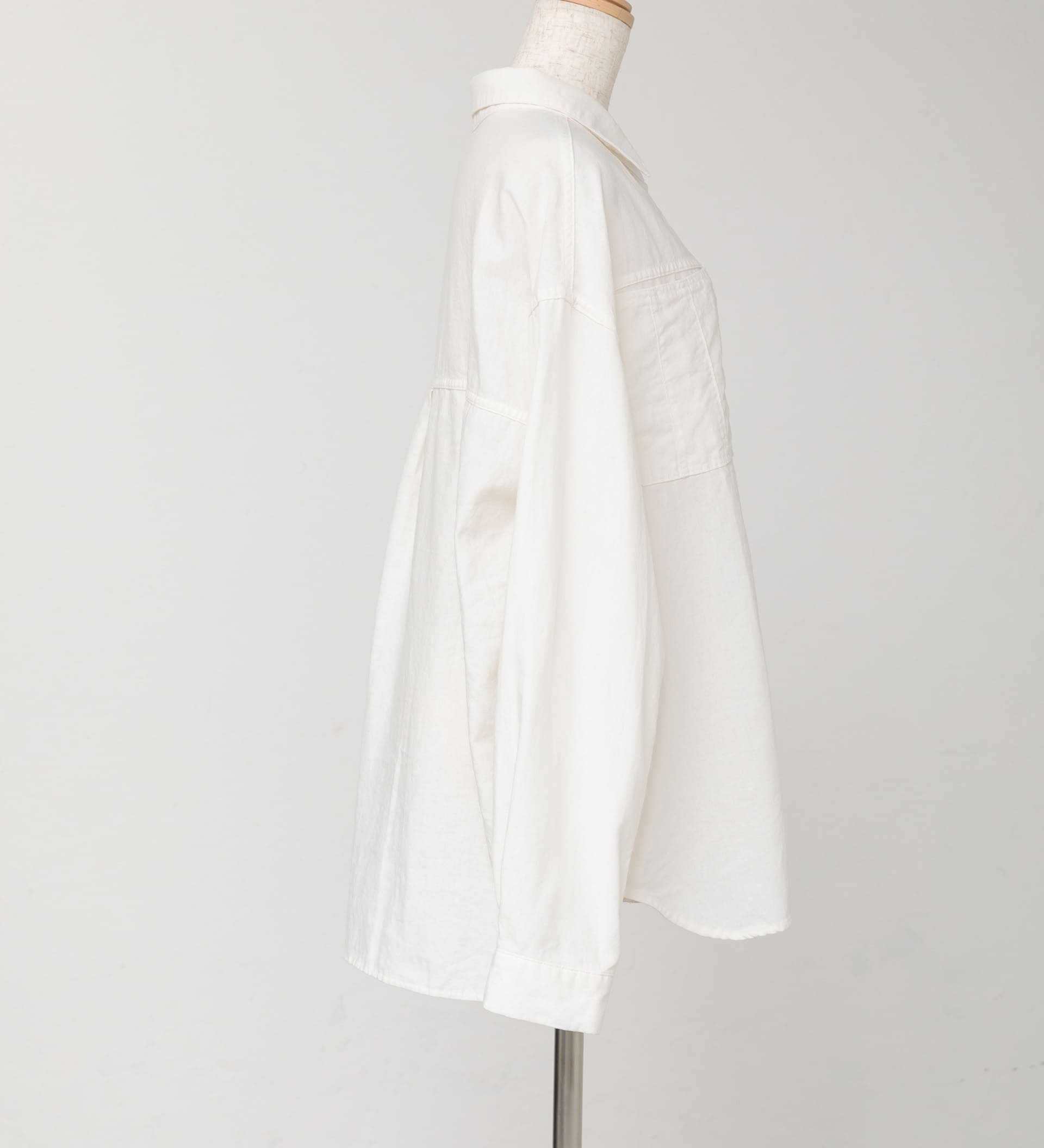 フロントボタンは生地と同色なので落ち着いた雰囲気があり、デニムとの相性も抜群。