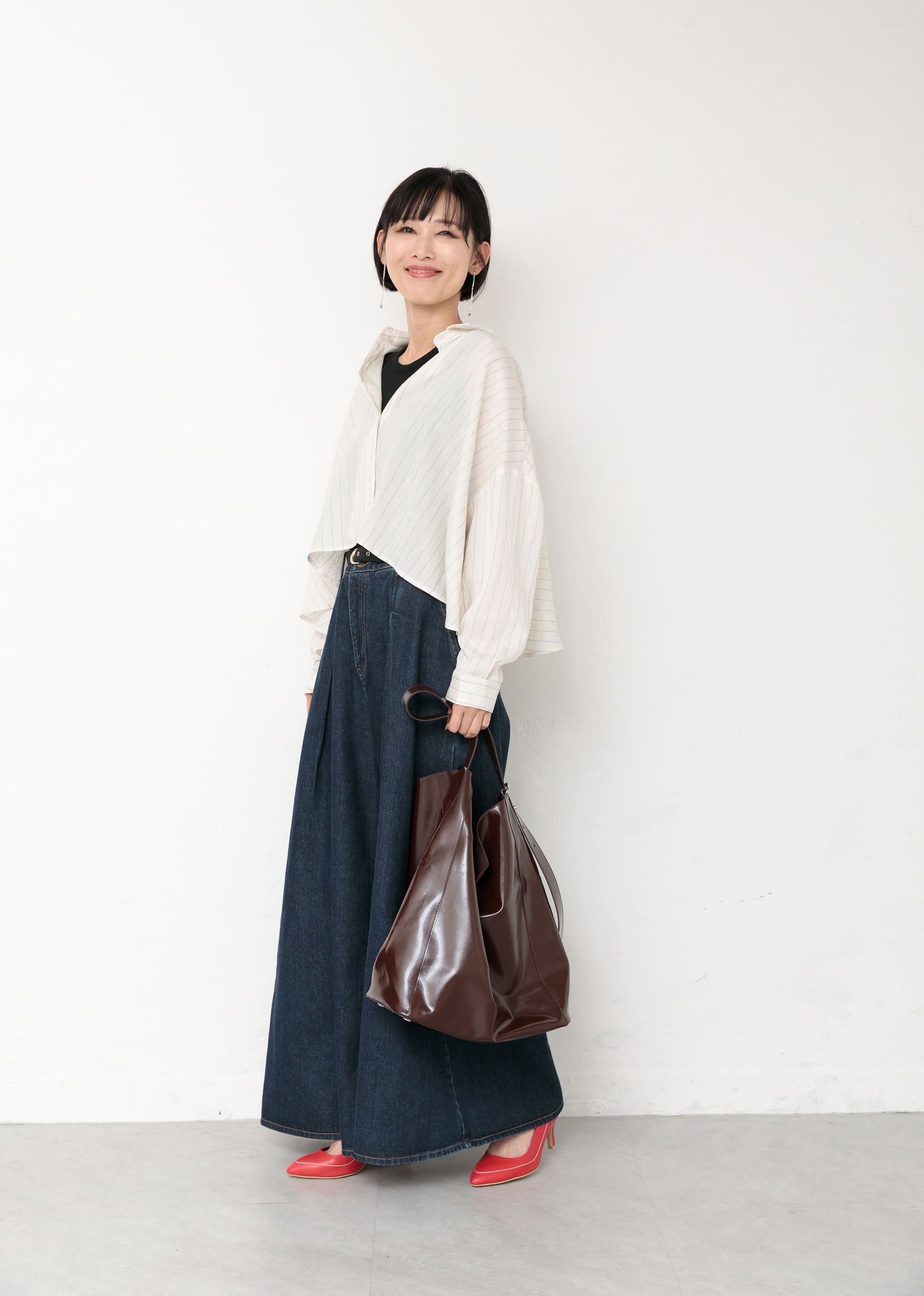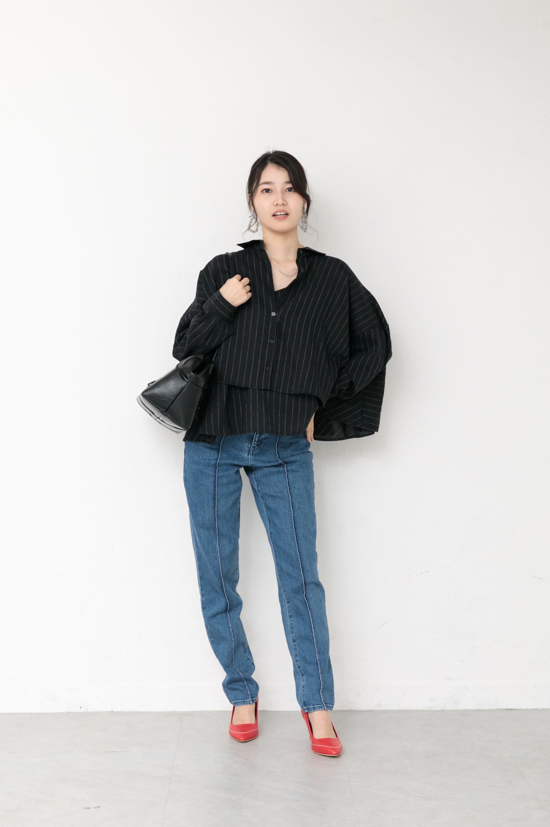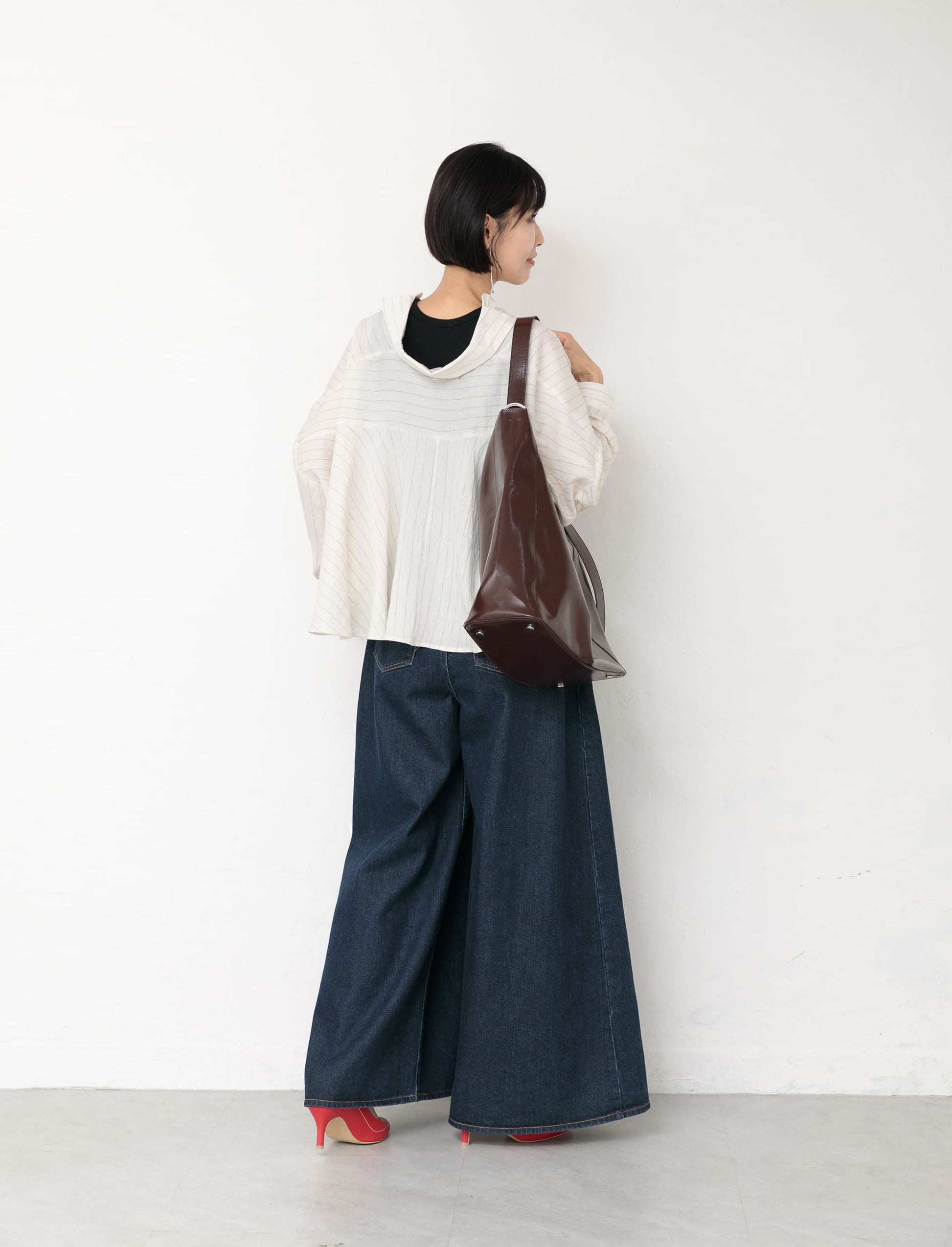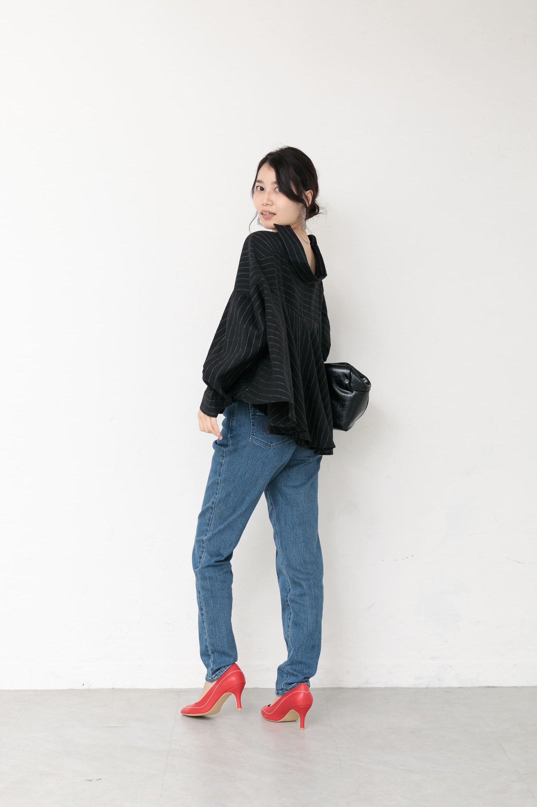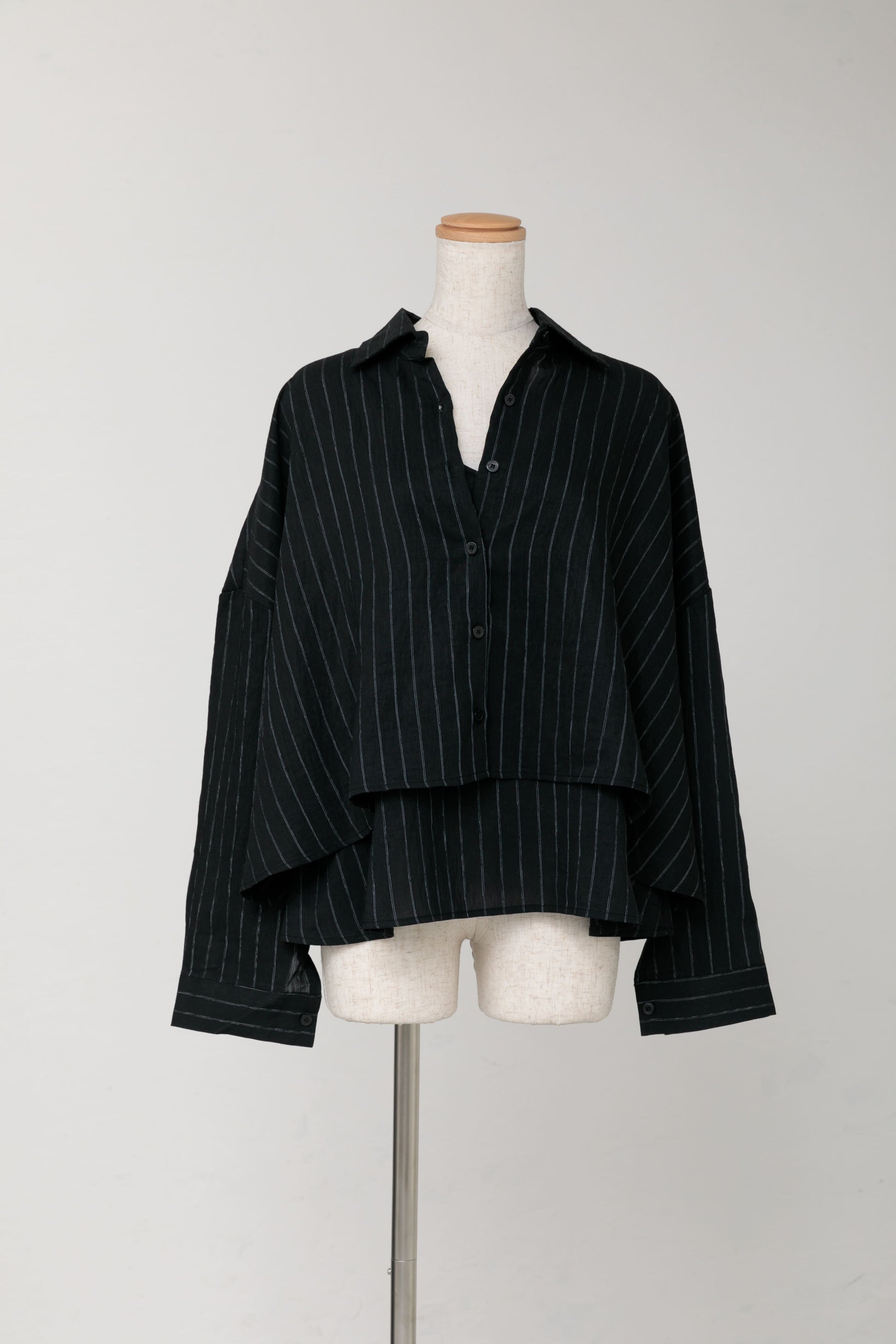 シャツは裾丈が短めでたっぷりと生地を使い揺れ感を楽しんで頂ける作りになっております。