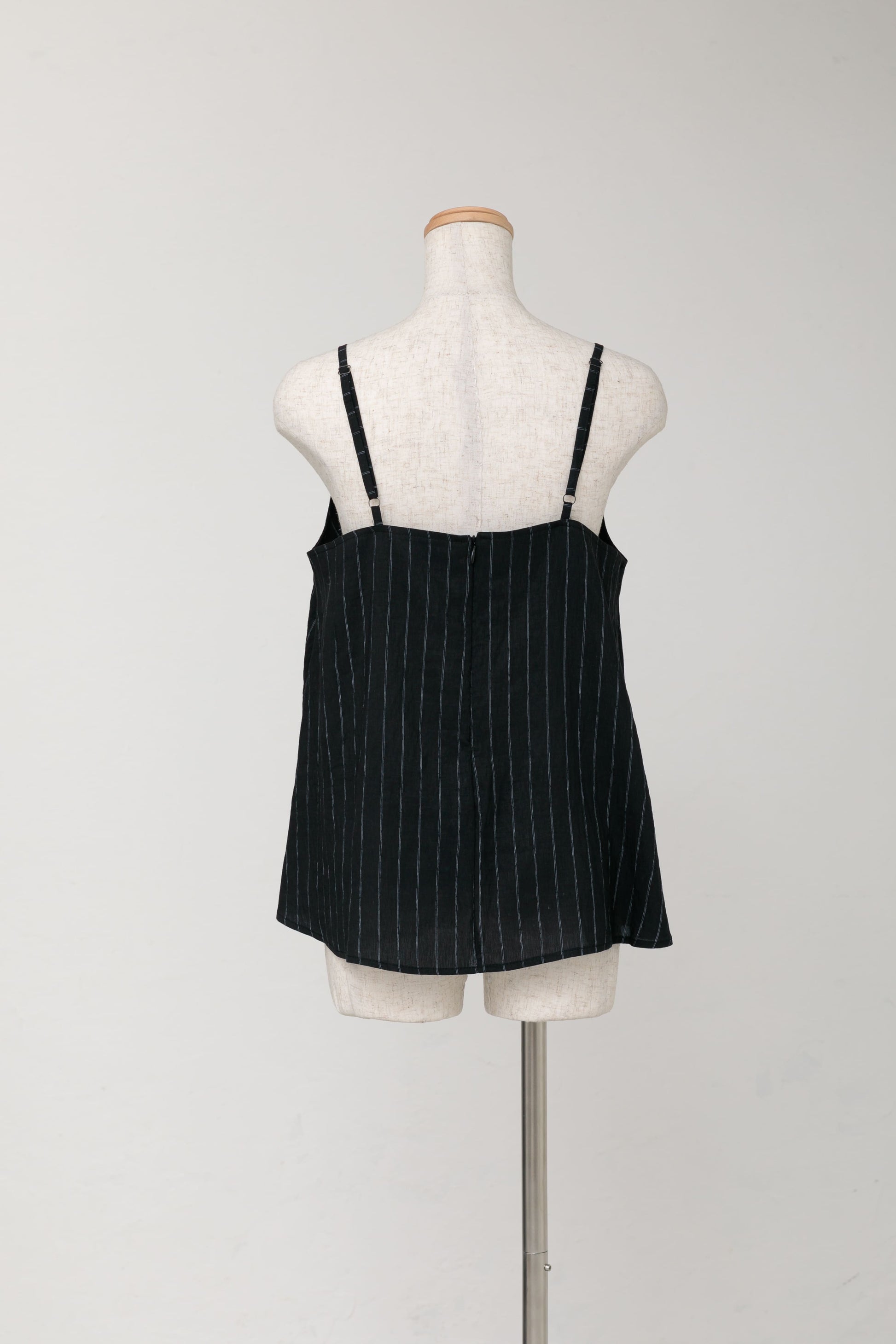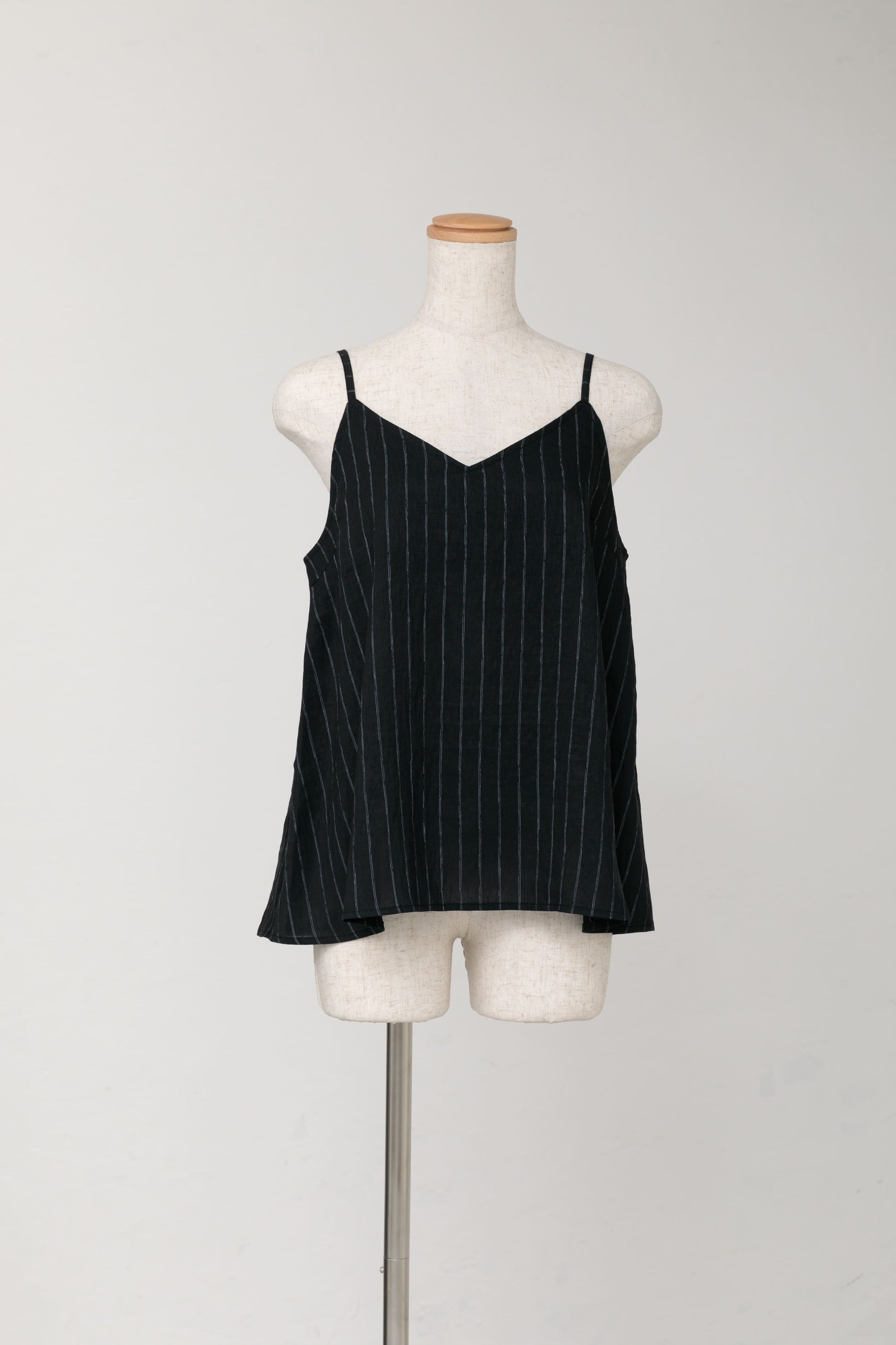 ストライプキャミ付きリネンシャツ|ブラック