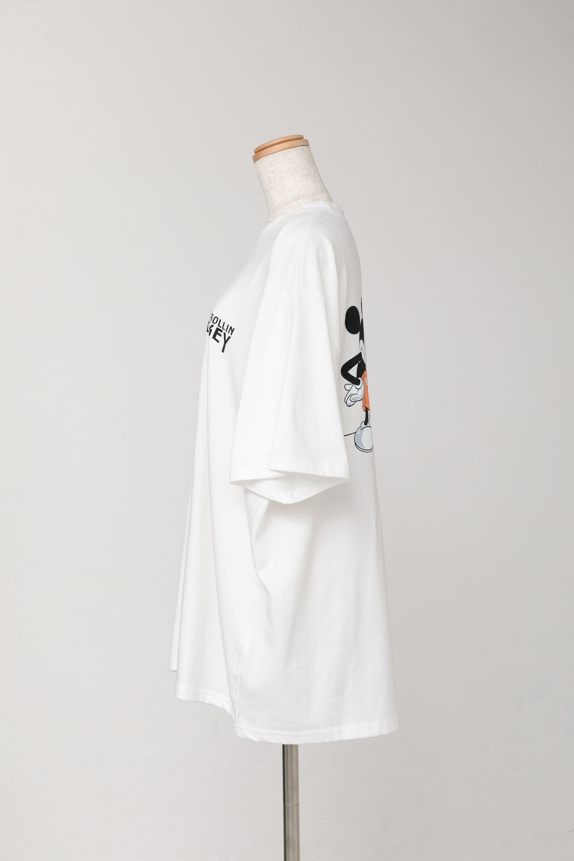 綿100%でバックに大きくミッキーがプリントされた大きめゆるっとTシャツ。