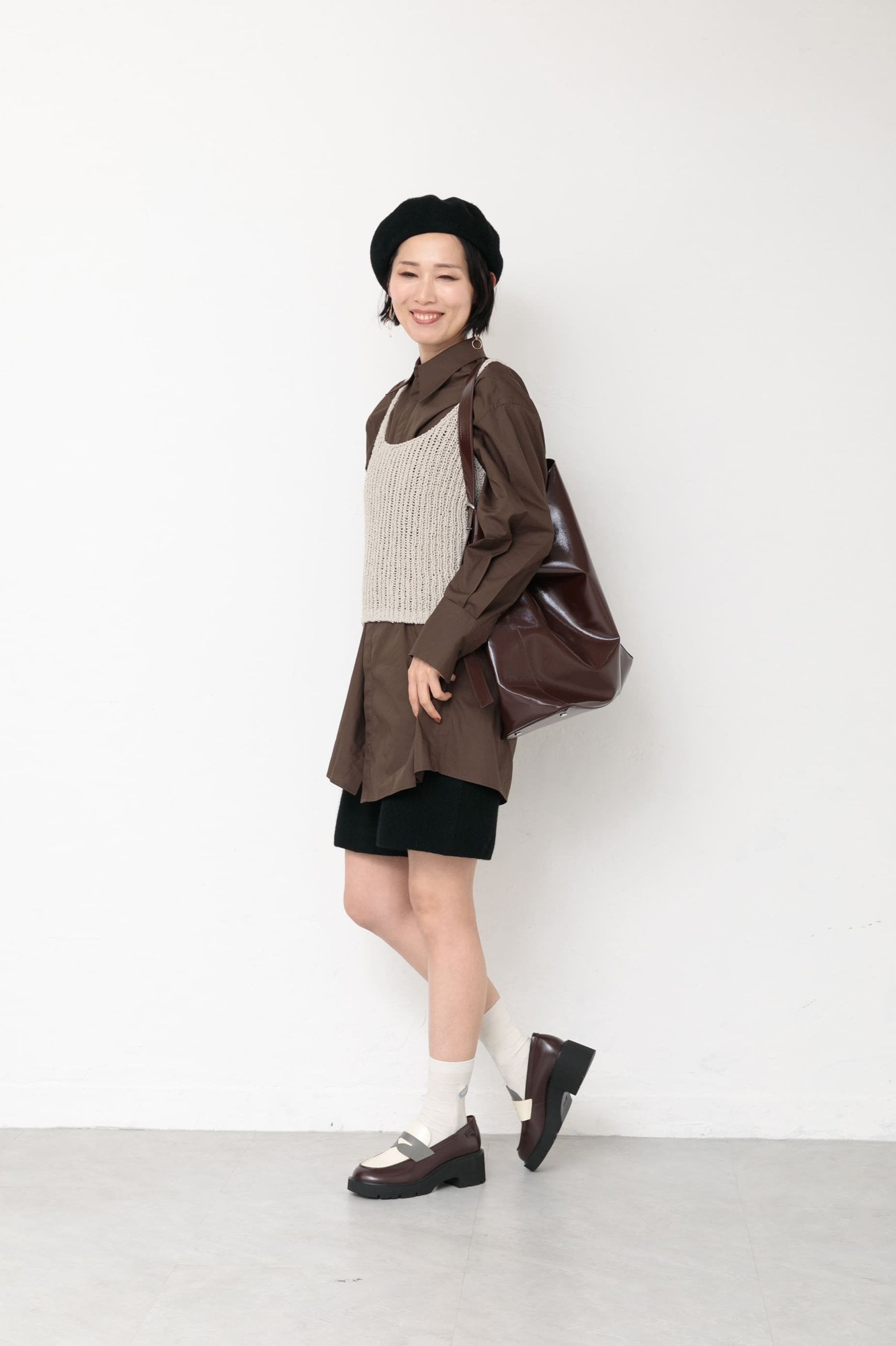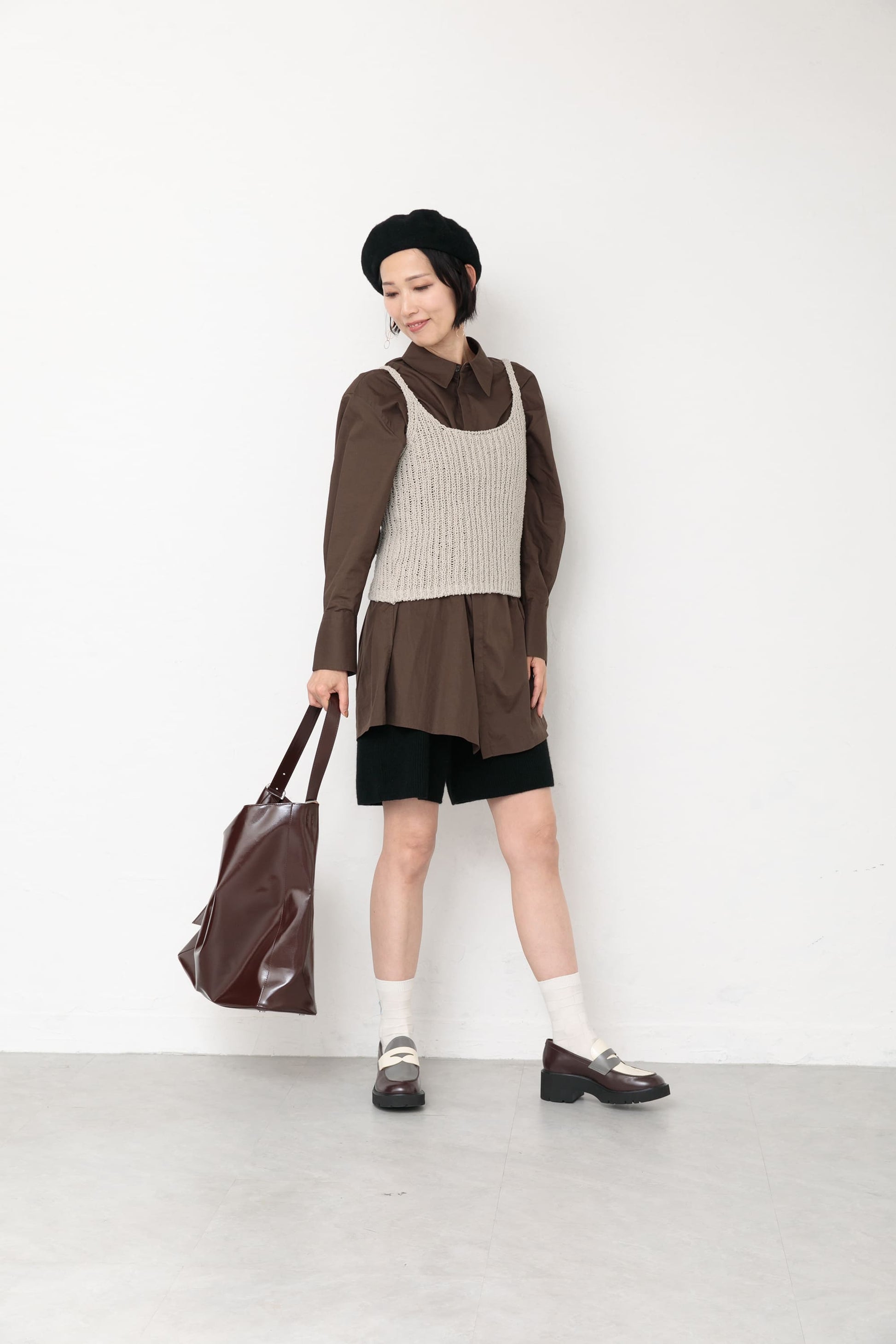 シンプルなデザインで中に着るインナー次第で雰囲気が変わり色んな着方を楽しめる万能選手。